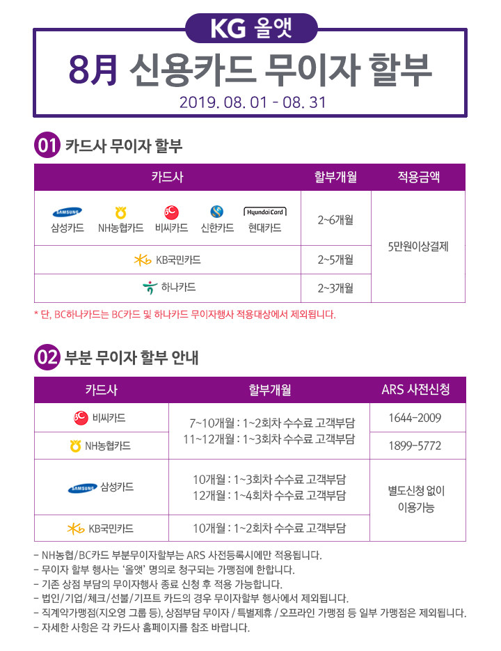 [공지] 8월 카드 무이자 할부 안내 페이스북 트위터 카카오톡