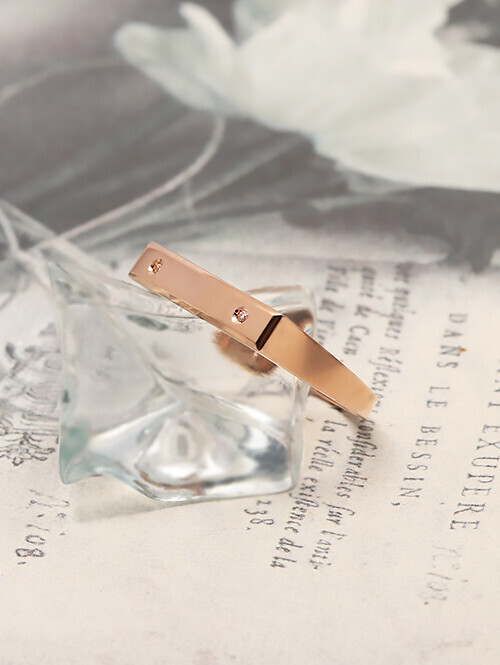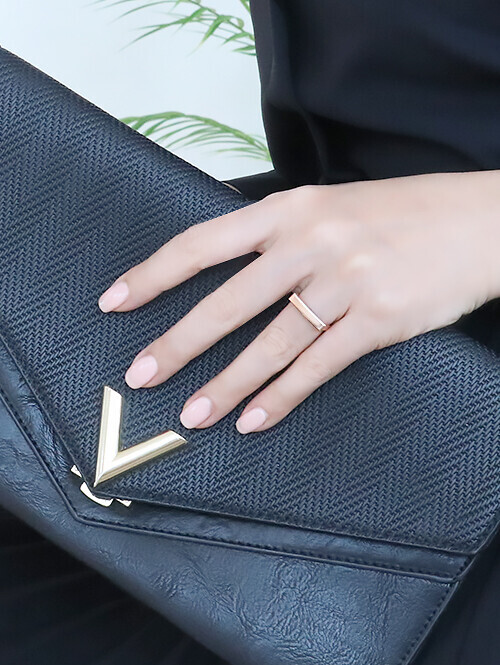• 모던한 직사각형 메인에 영문 각인이 새겨진 반지