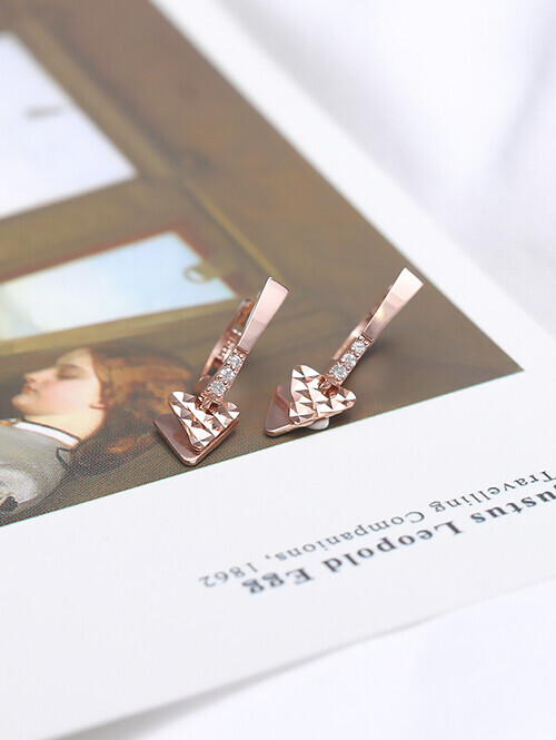 • 조각컷팅의 삼각 쉐입과 민자 삼각 쉐입이 겹쳐져 매치된 귀걸이