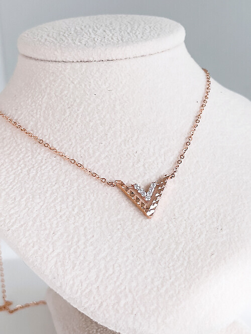 • 블링한 컷팅와 큐빅 V 쉐입이 이중으로 반짝거리는 목걸이