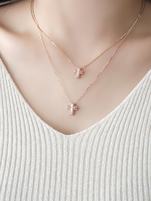 • 십자가 쉐입에 반짝이는 플리츠 컷팅이 더해진 유니크한 무드의 십자가 목걸이