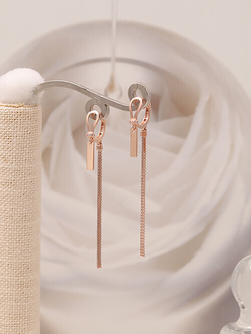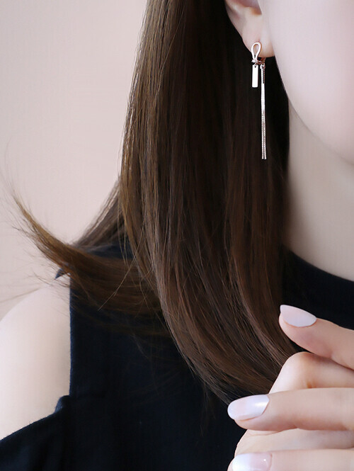 • 부드러운 라운드 고리 아래로 태그 장식이 포인트로 연결된 롱 드롭 귀걸이