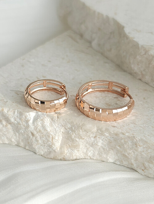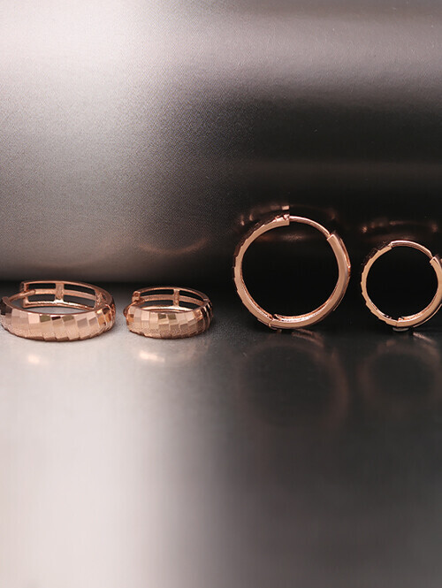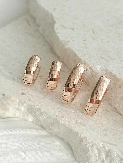 • 볼륨감있는 원터치 링 바디에 섬세한 컷팅패턴이 더해진 감각적인 귀걸이