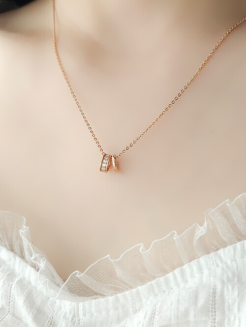 • 심플한 민자 링 펜던트와 글로시한 큐빅링 펜던트로 투웨이 연출이 가능한 모던한 무드의 목걸이