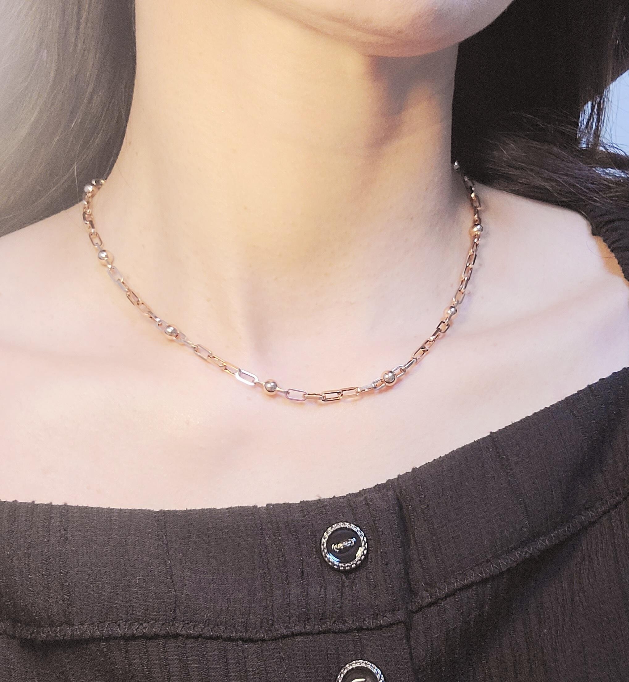 정장에 하려고 구매했는데 의외로 캐쥬얼에도 잘 어울려요. 목이 다 드러나지 않은 옷을 입어도 살짝 살짝 보이는 독특한 체인이 눈길을 잡네요. 파인 블라우스에서는 온전한 고급스러움과 화려함을 보여줄 수 있네요. 늘 그렇듯 매우 만족해요.