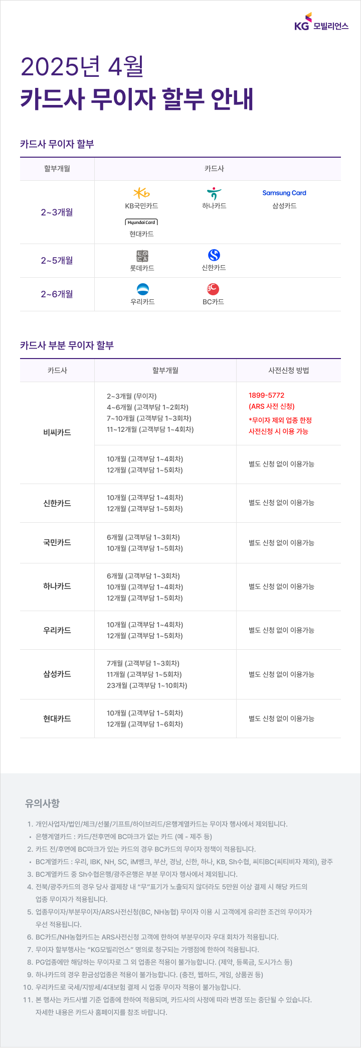 [공지] 4월 카드 무이자 할부 안내 페이스북 트위터 카카오톡