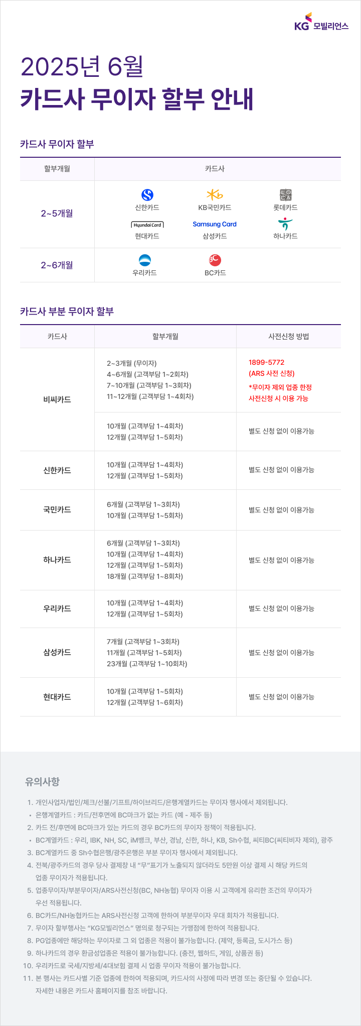 [공지] 25년 6월 무이자 할부 안내 페이스북 트위터 카카오톡