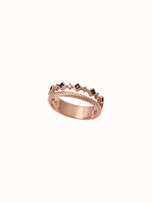 14K 18K 바이트 스퀘어컷팅 레이어드 반지 (두줄)
