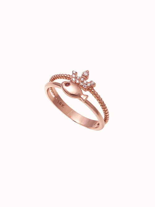 두 마리의 돌고래 꼬리쉐입이 행운도 두 배로 가져다 주는 의미있는 외반지