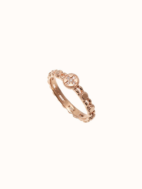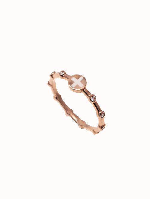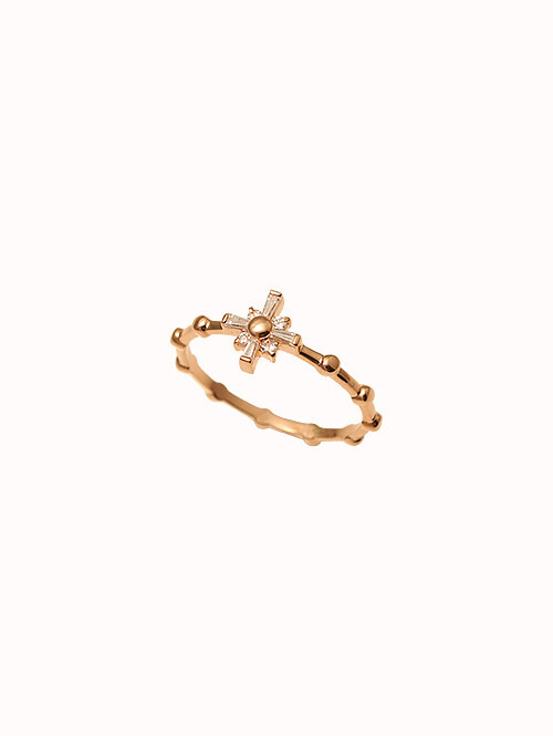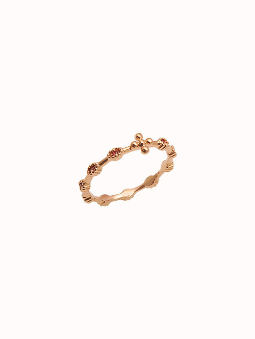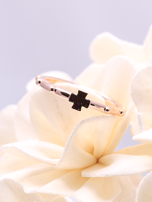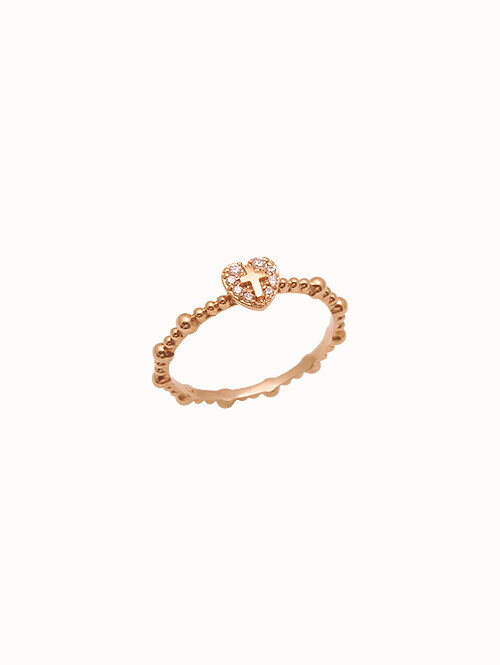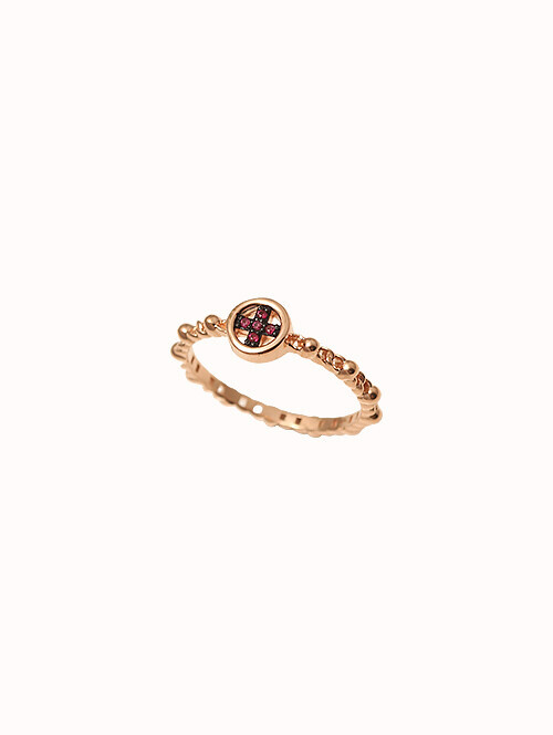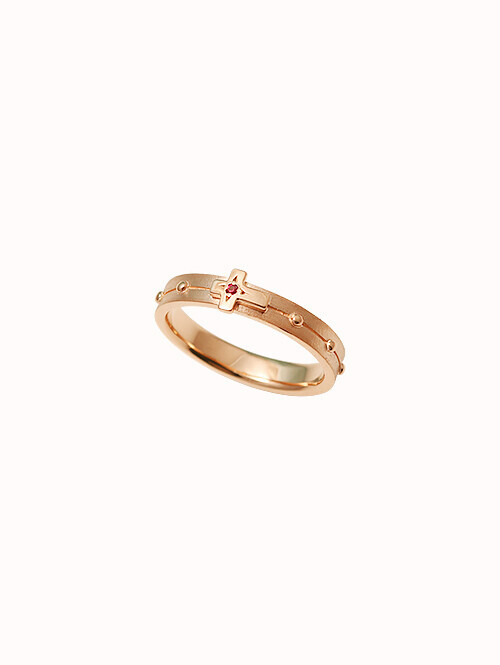 귀여운 볼 십자가를 중심으로 루비큐빅이 링라인에 세팅된 묵주반지