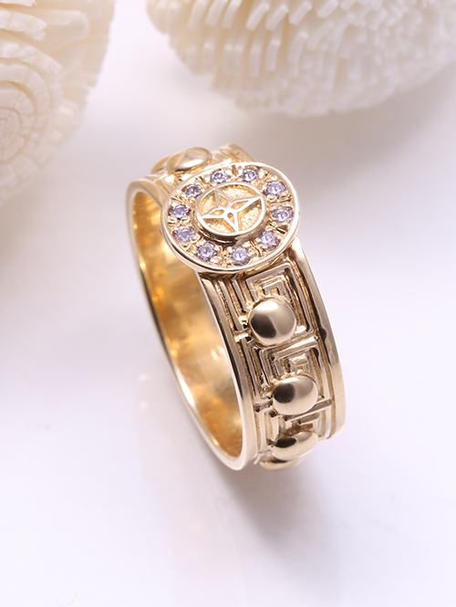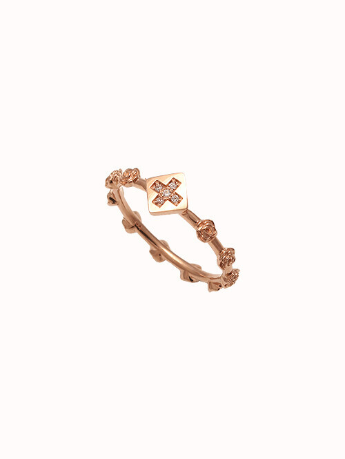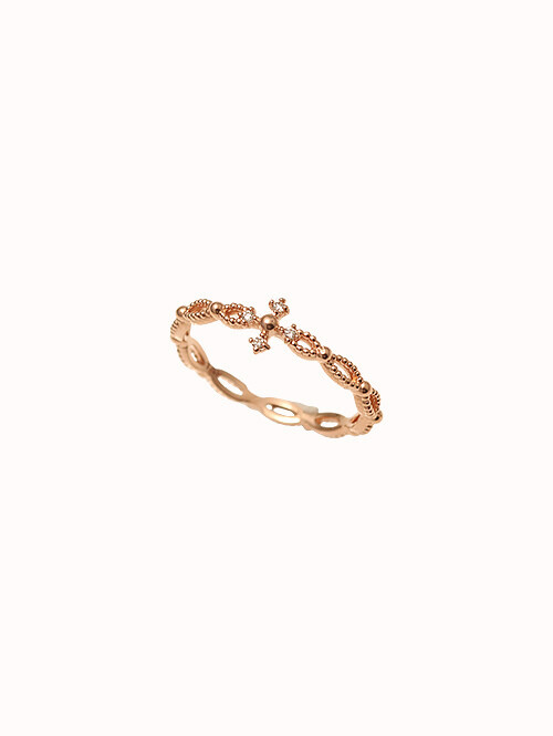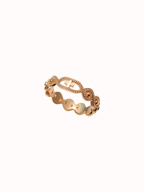 중앙에 십자가를 메인으로 엠보 테두리가 웨이브되어 교차된 디자인의 반지