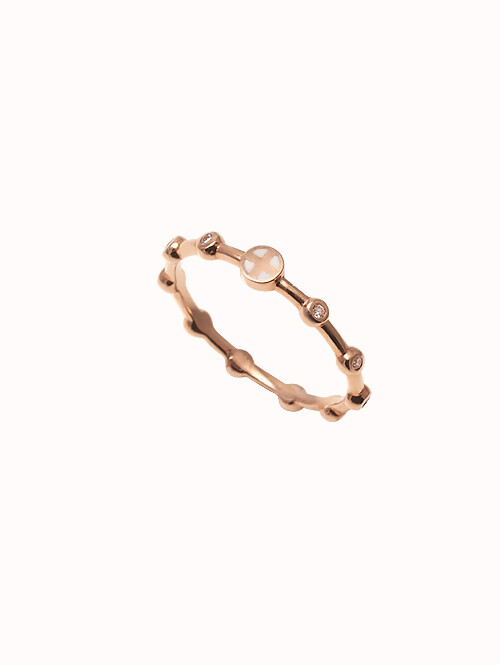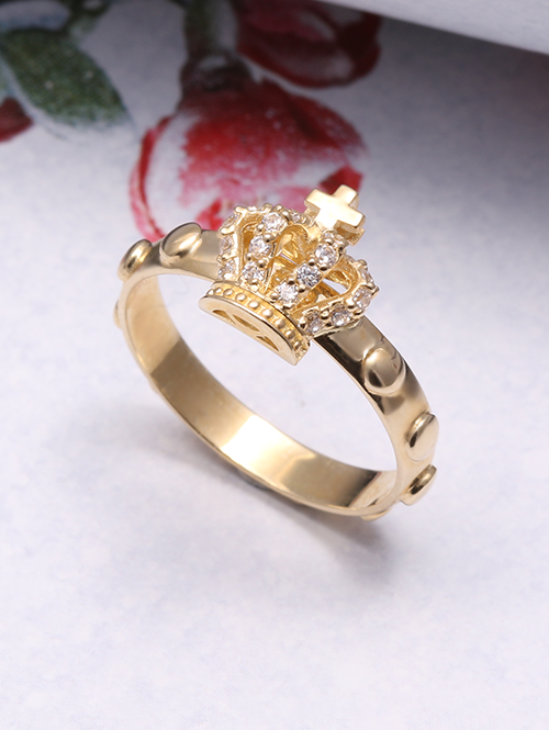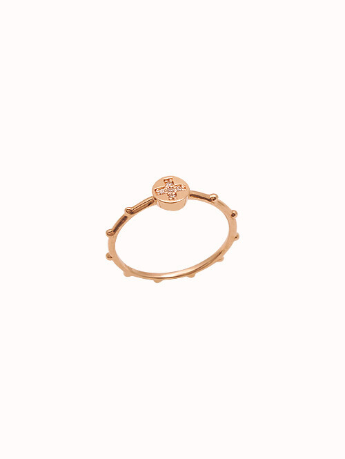 10개의 염주 돌기에 화이트 큐빅이 세팅된 묵주반지