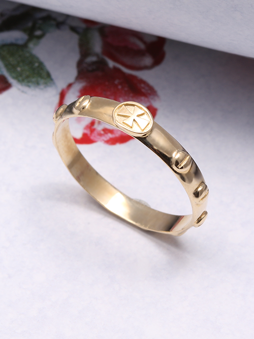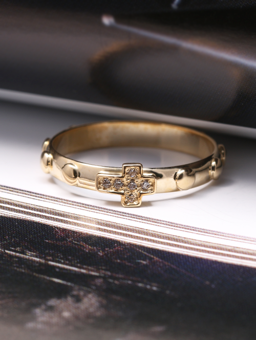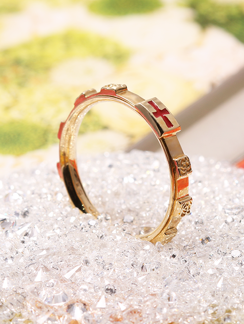 십자가 무늬가 들어간 써클 장식과 볼 묵주단 장식이 있는 천주교반지