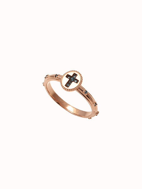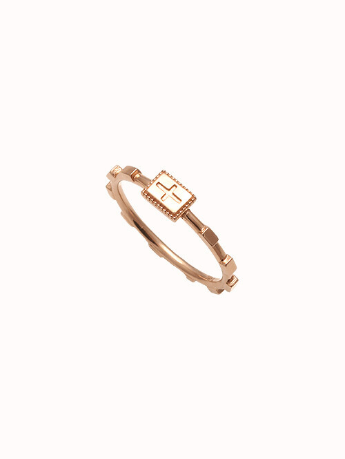 써클 십자가 장식과 엠보 테두리가 둘러진 회전 묵주반지
