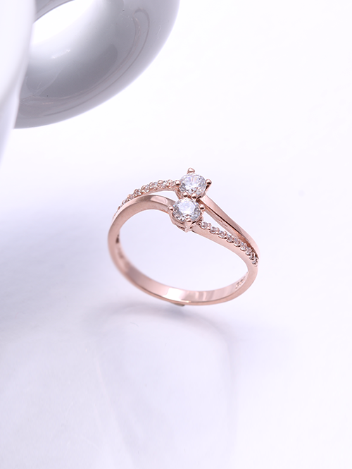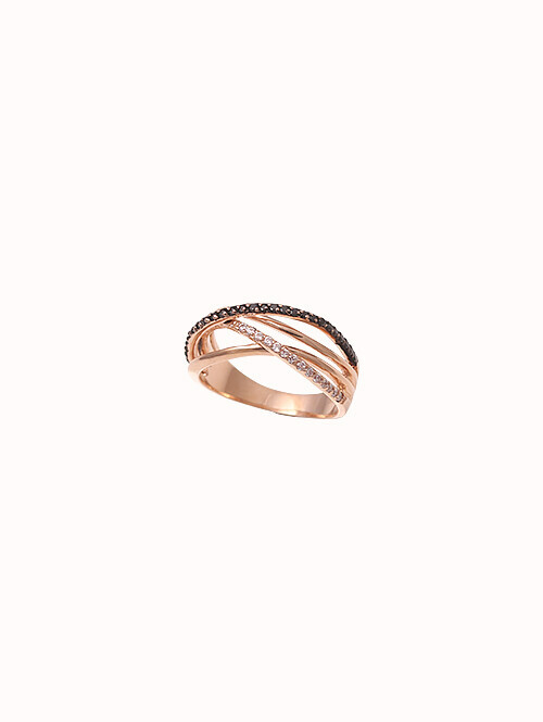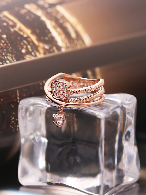 블링한 리본 쉐입과 큐빅 라인이 두줄로 연결된 애끼링