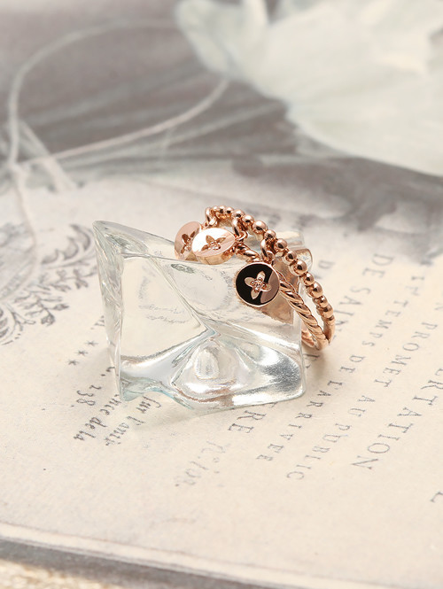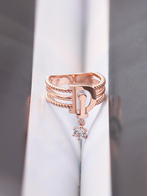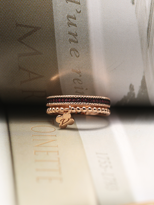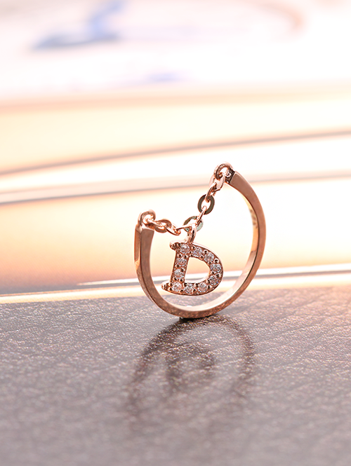 넓이감있는 세줄 레이어드 링과 영문 이니셜 D 쉐입이 돋보이는 애끼링