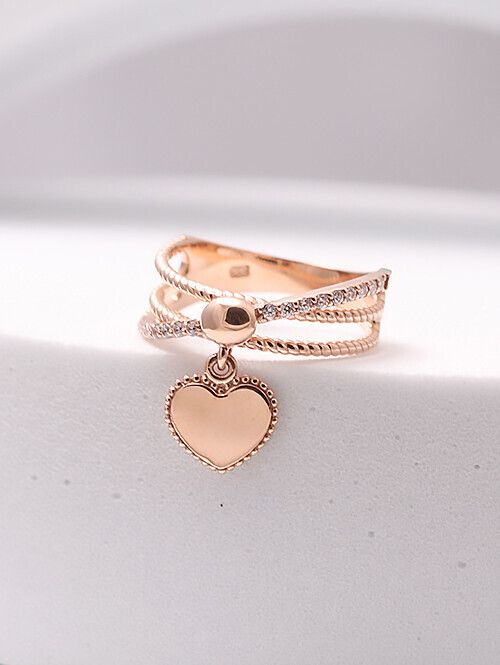 두줄 로프 라인과 큐빅라인이 세 줄로 매치된 러블리 하트딸랑이 애끼링