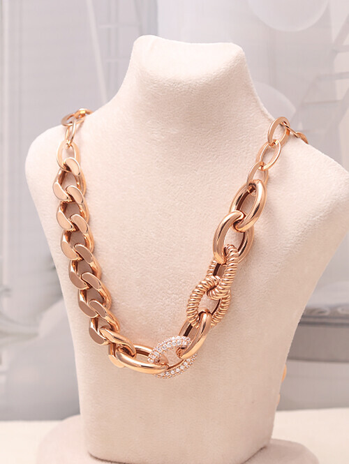 관능적인 매력이 가득 담긴 드레시한 무드의 일체형 체인 스틱 목걸이