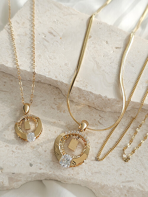 뫼비우스의 띠를 닮은 꼬임 라인 쉐입과 컷팅써클을 믹스한 감각적인 체인목걸이