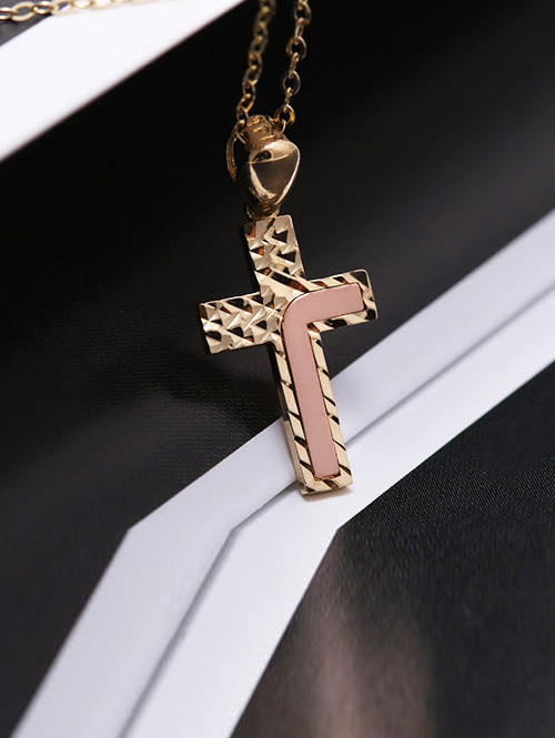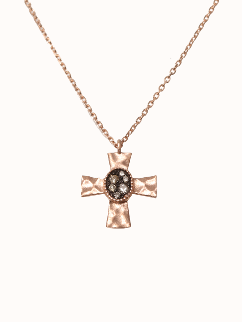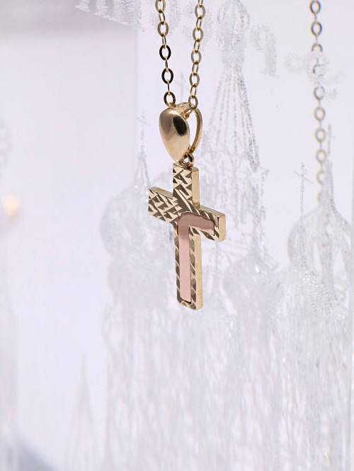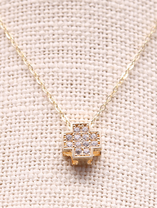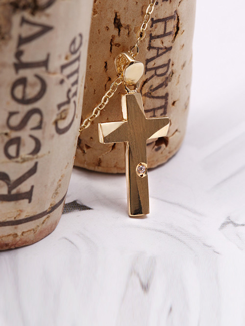 14K 18K 꼬냑 러프 큐빅 양면 십자가 목걸이