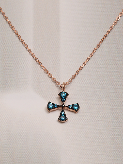 14K 18K 블루 다이아 십자가 드롭 목걸이