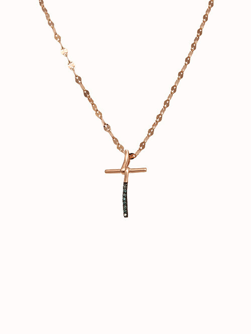 시크한 블랙큐빅이 세팅된 일체형 십자가 목걸이