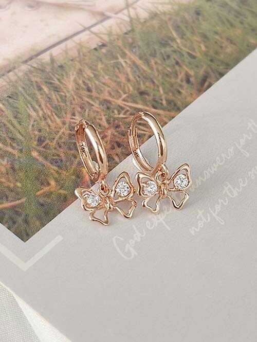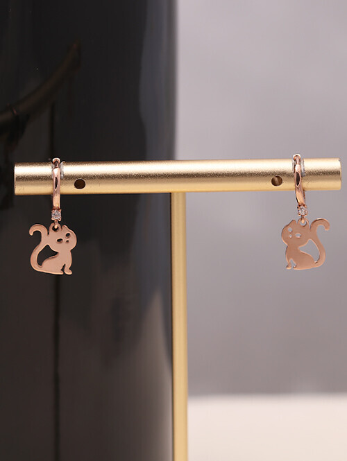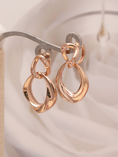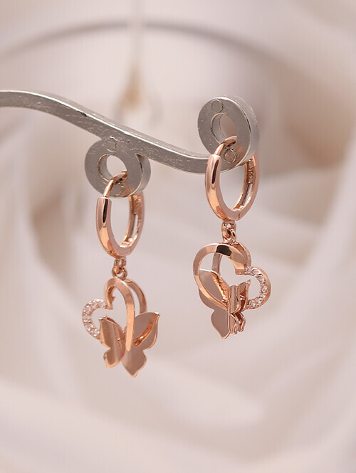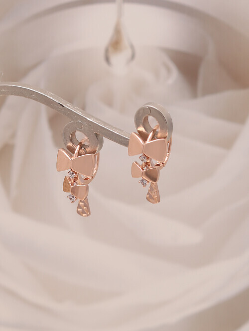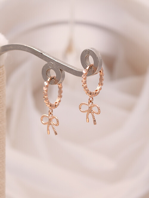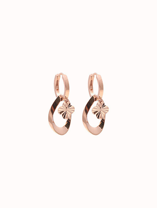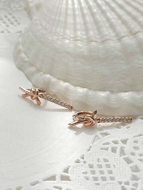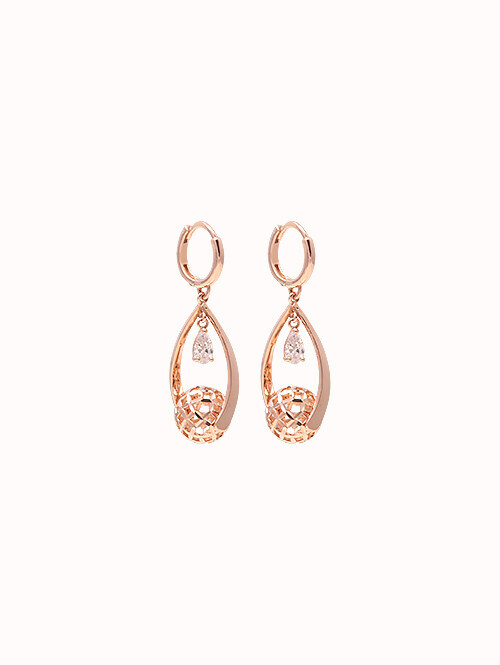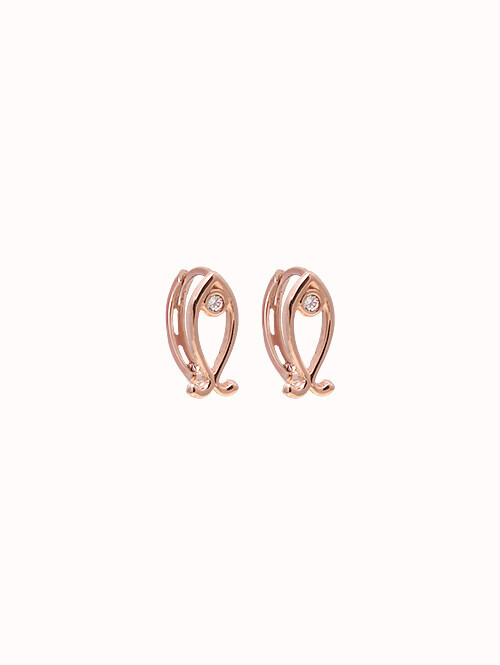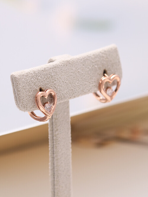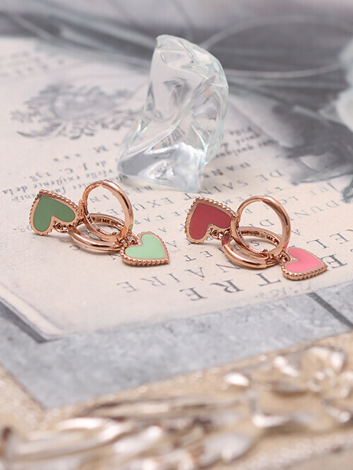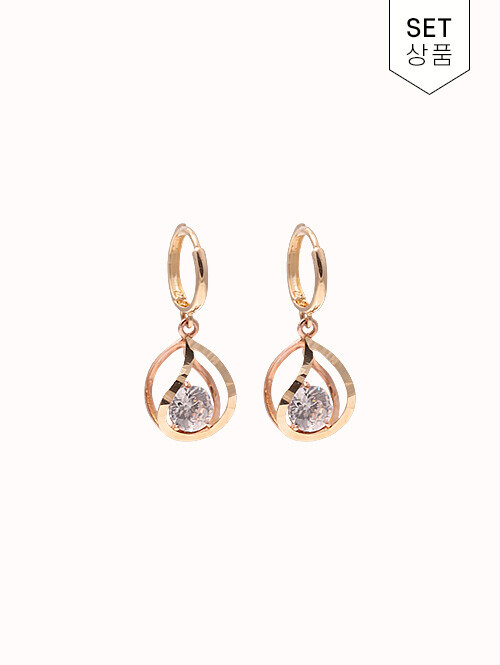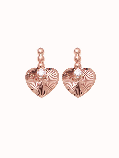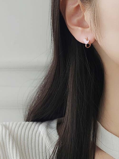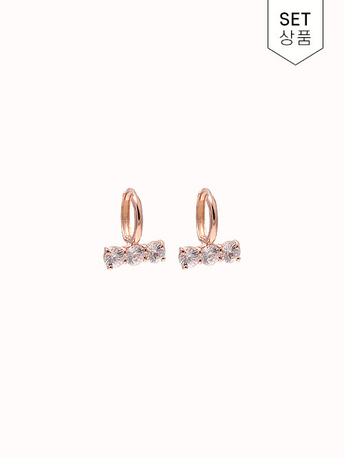 매력적인 웨이브 링바디에 큐빅과 컷팅 하트 딸랑이가 달린 러블리한 귀걸이