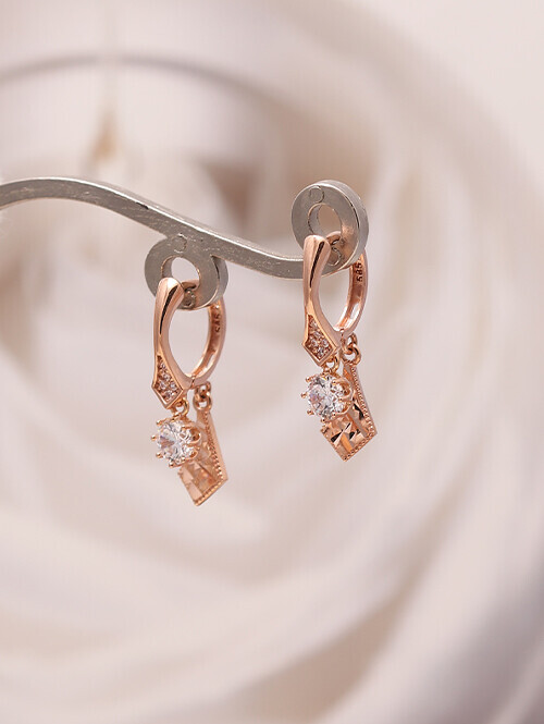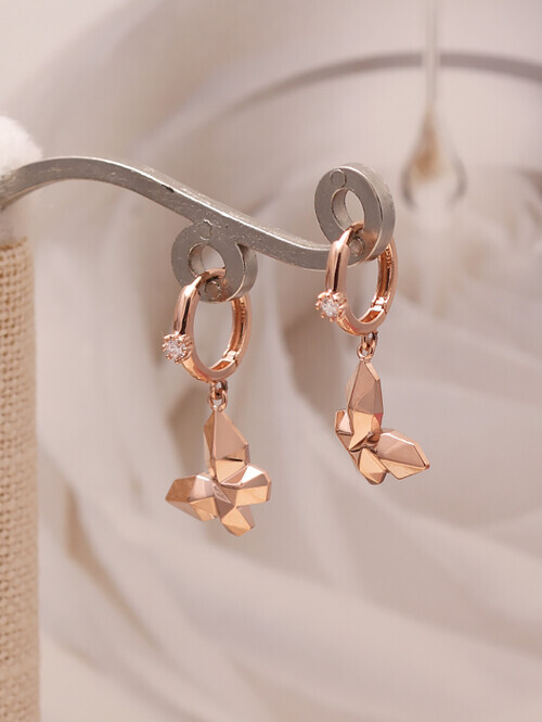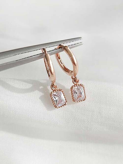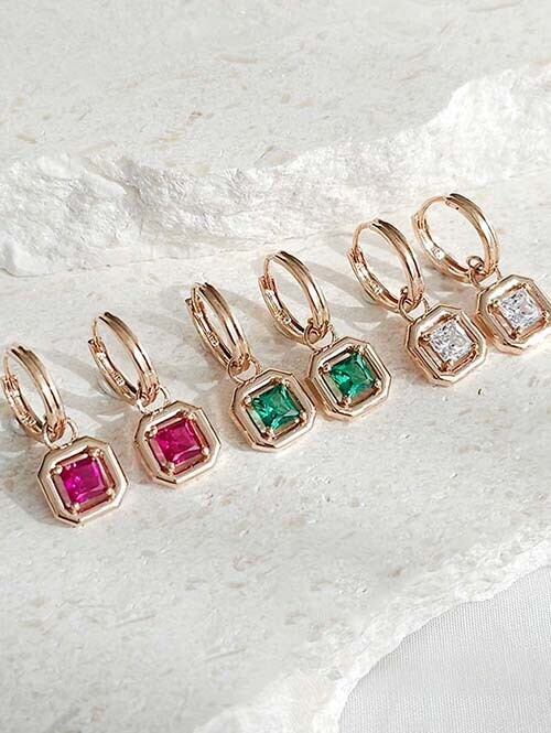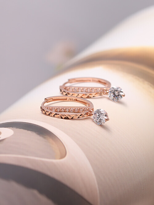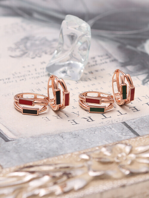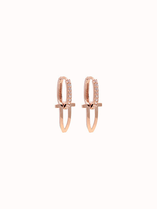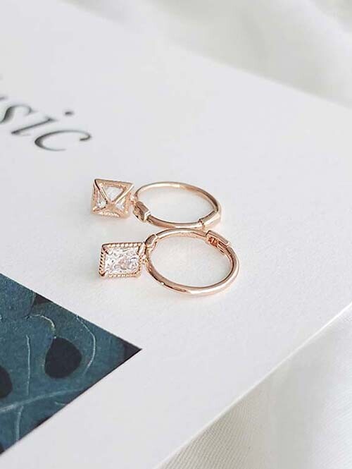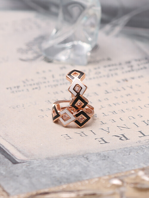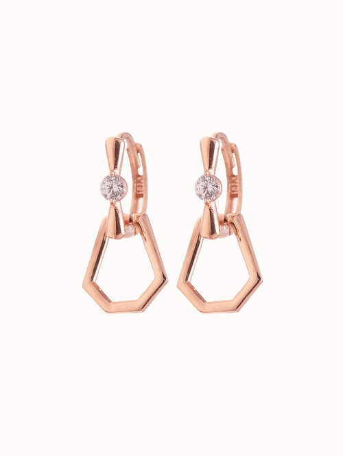 입체감이 느껴지는 마름모 형태의 링 귀걸이.