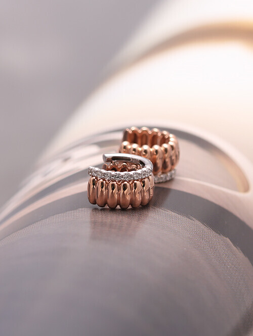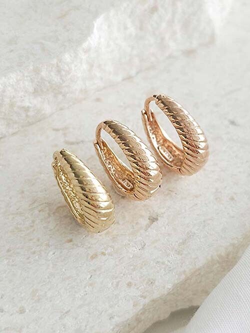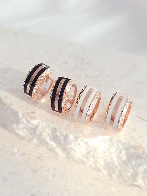 볼륨감있는 링 바디에 세로라인이 더해진 유니크한 귀걸이