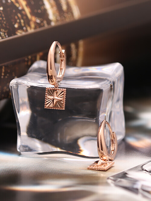 14K 18K 로드아 스퀘어 링 귀걸이(중사이즈)