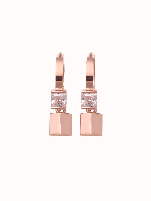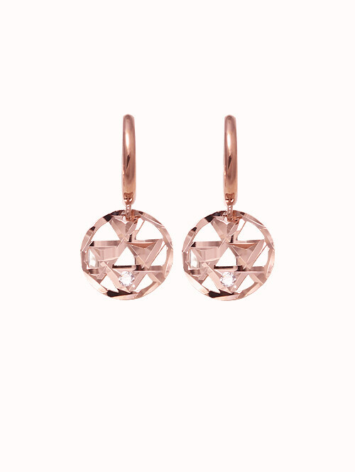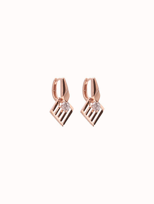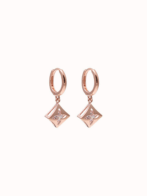 입체감이 느껴지는 마름모 형태의 링 귀걸이.