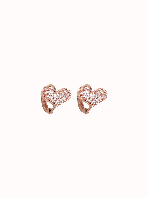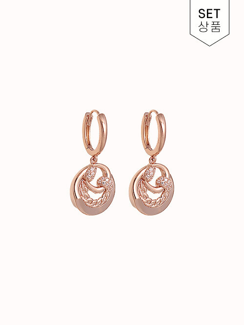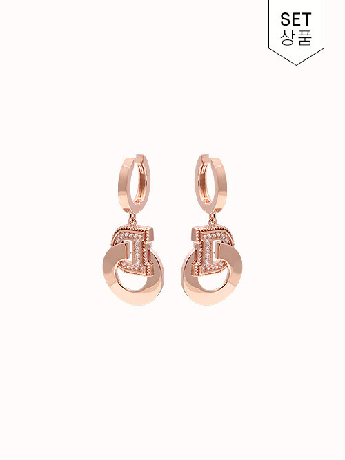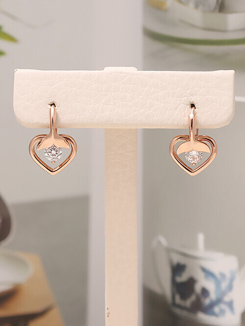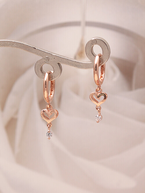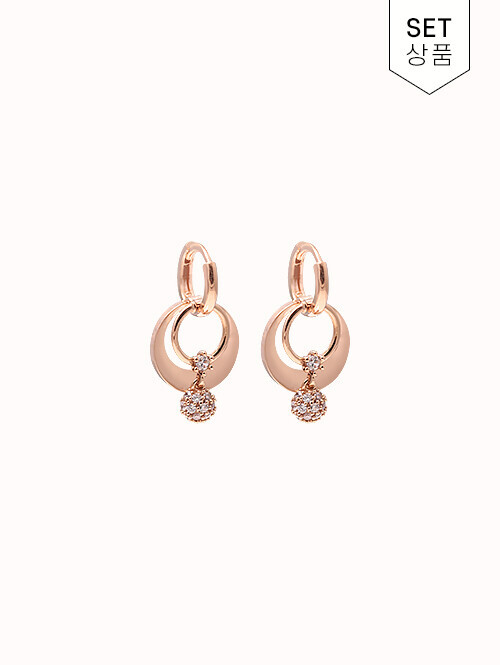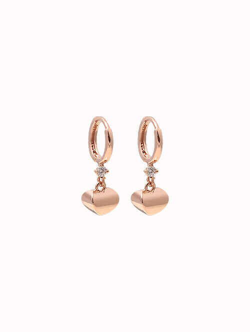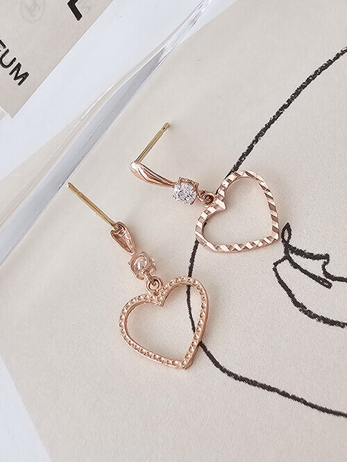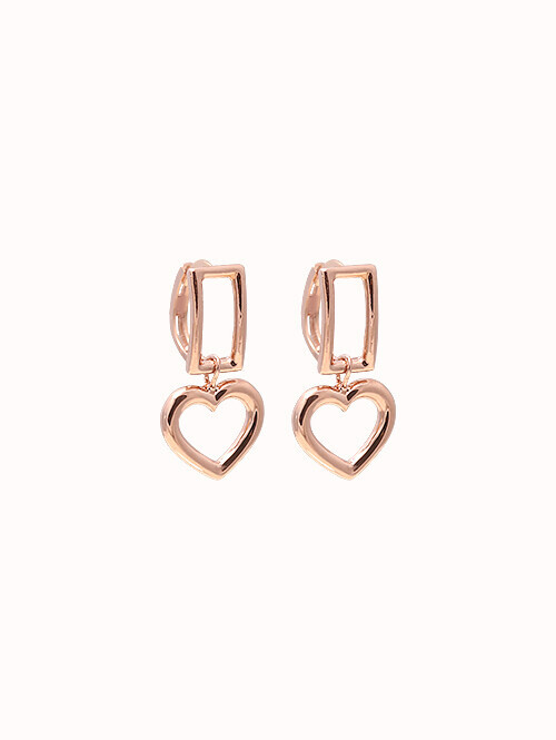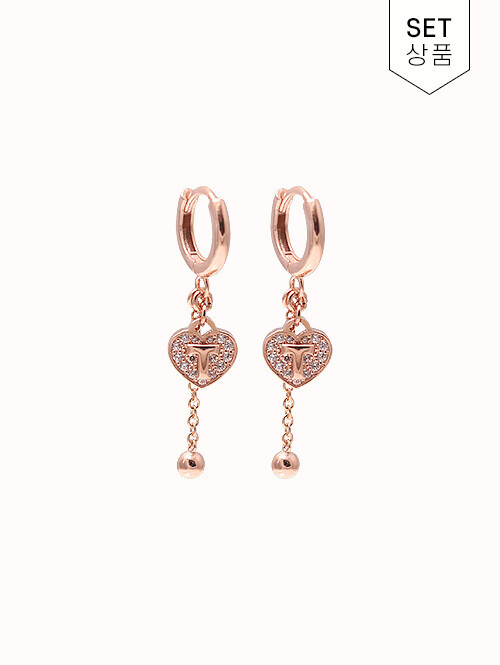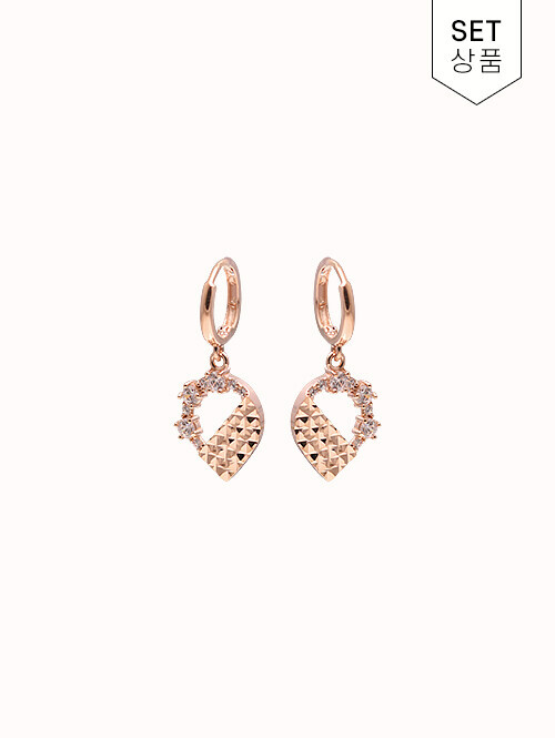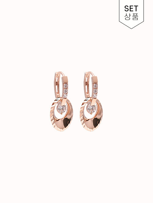 매력적인 웨이브 링바디에 큐빅과 컷팅 하트 딸랑이가 달린 러블리한 귀걸이