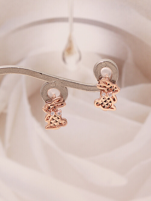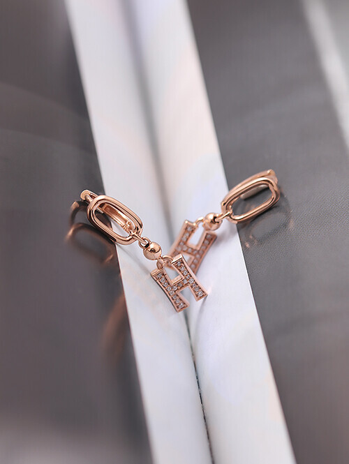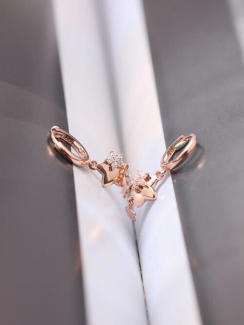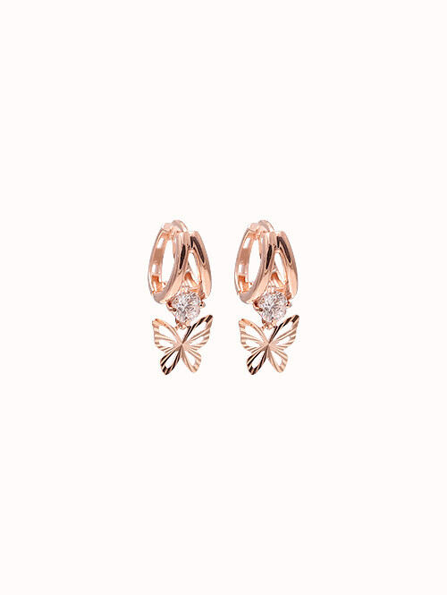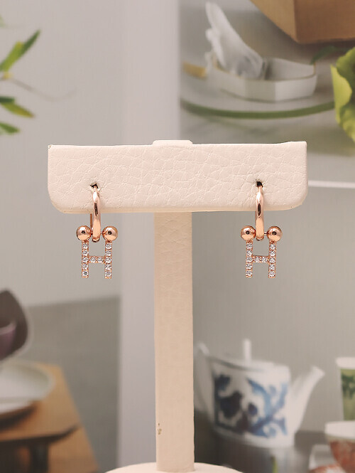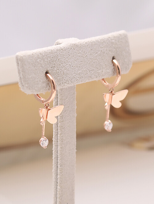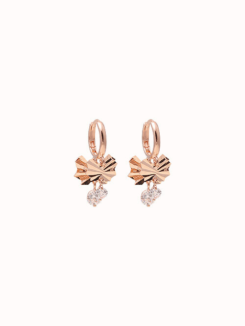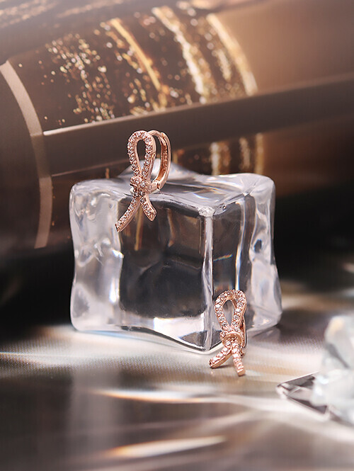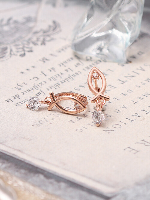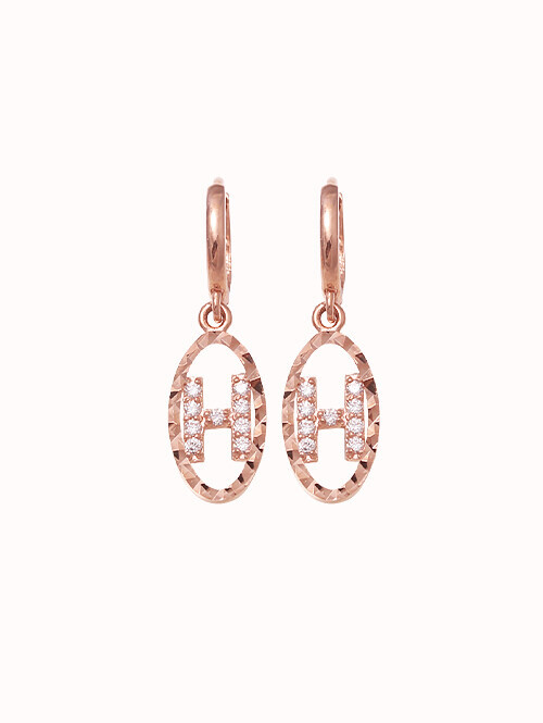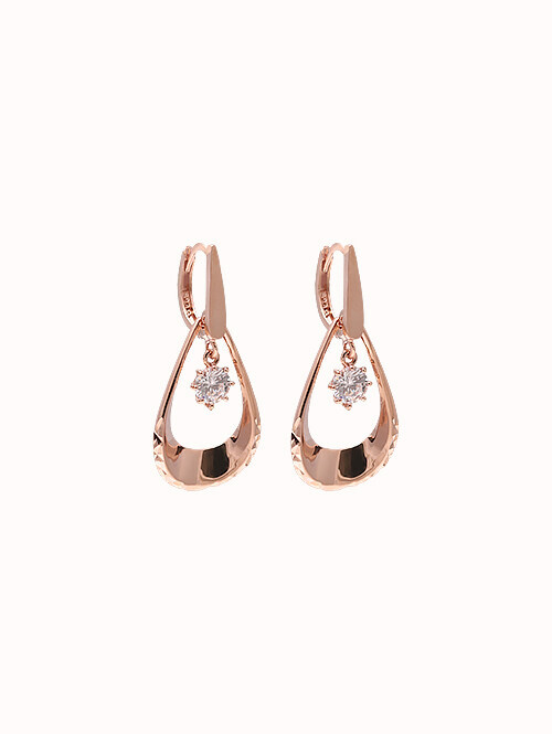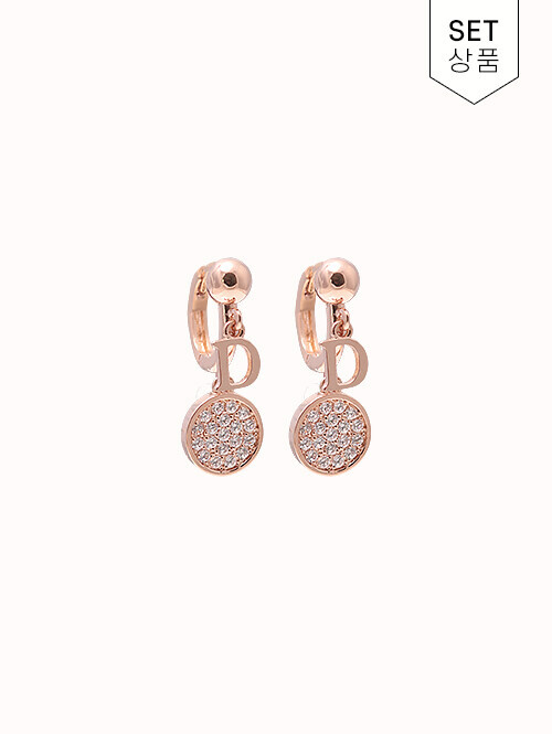 매력적인 웨이브 링바디에 큐빅과 컷팅 하트 딸랑이가 달린 러블리한 귀걸이