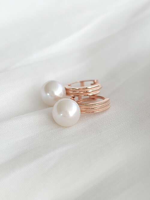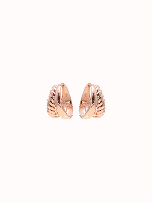 볼륨감있는 링 바디에 세로라인이 더해진 유니크한 귀걸이