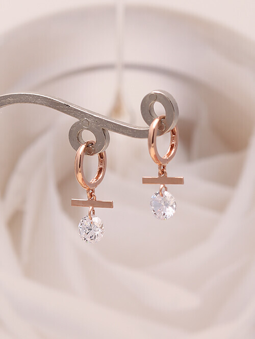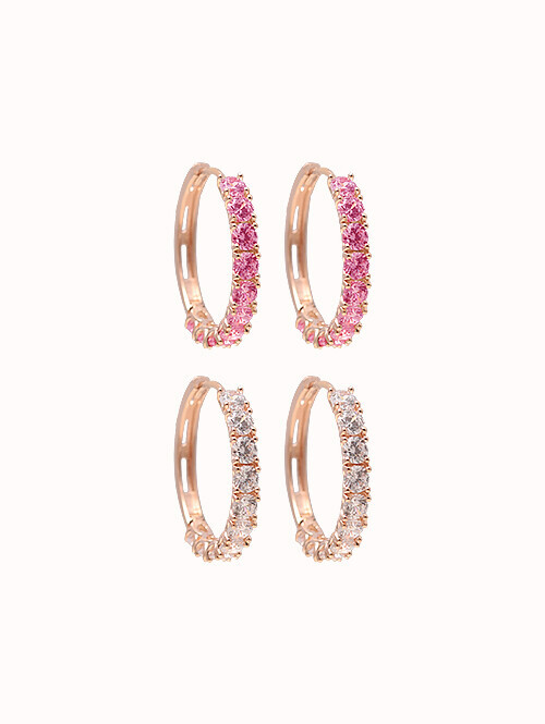 화이트큐빅이 듀얼 발물림 세팅되어 있는 클래식한 멋, 테니스 링 귀걸이