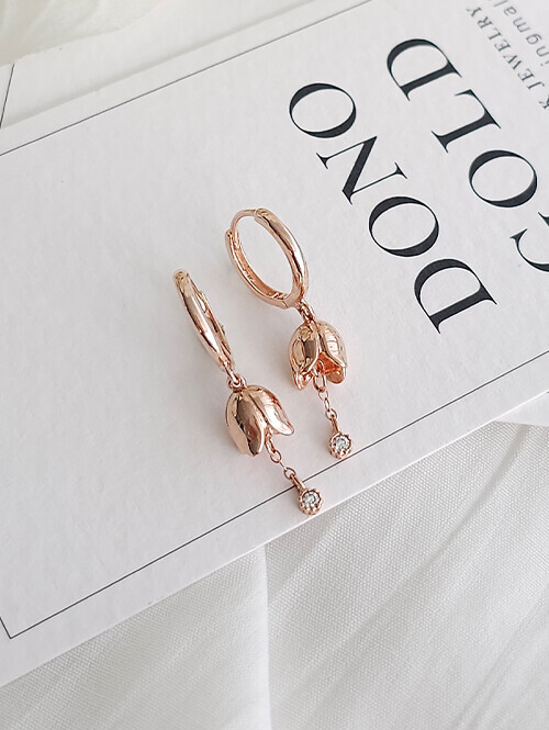 살랑살랑 두 개의 플라워 쉐입이 딸랑이는 여성스러운 무드의 귀걸이