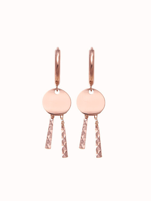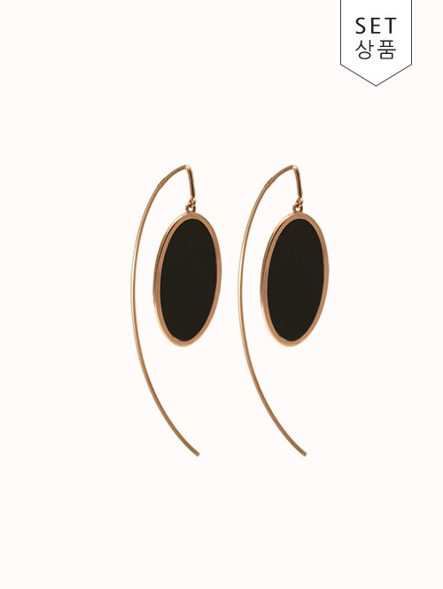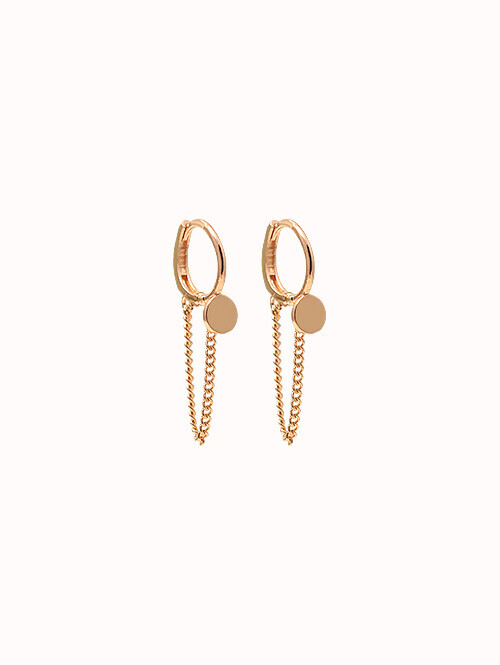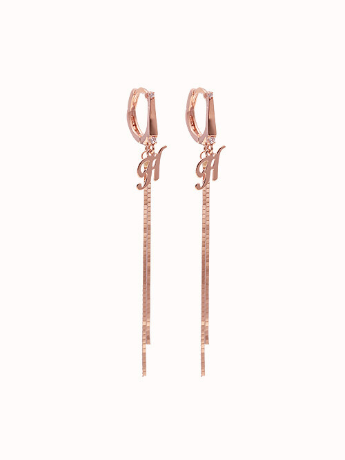 부드러운 라운드 고리 아래로 태그 장식이 포인트로 연결된 롱 드롭 귀걸이