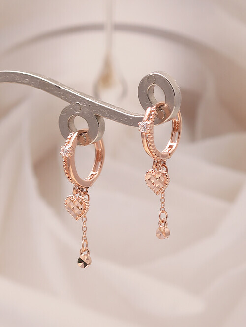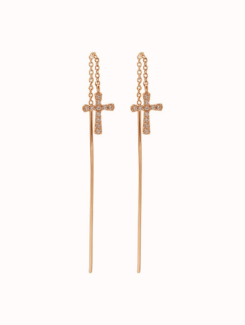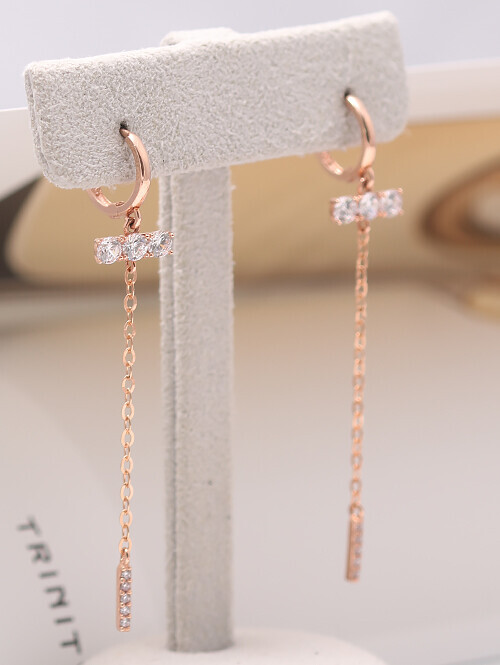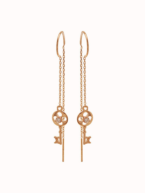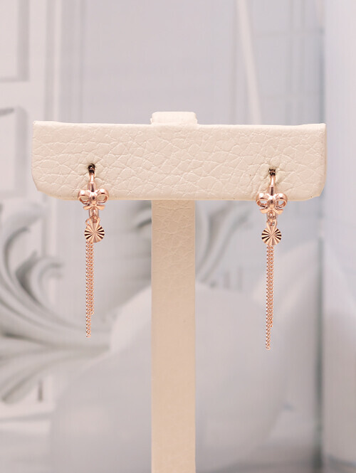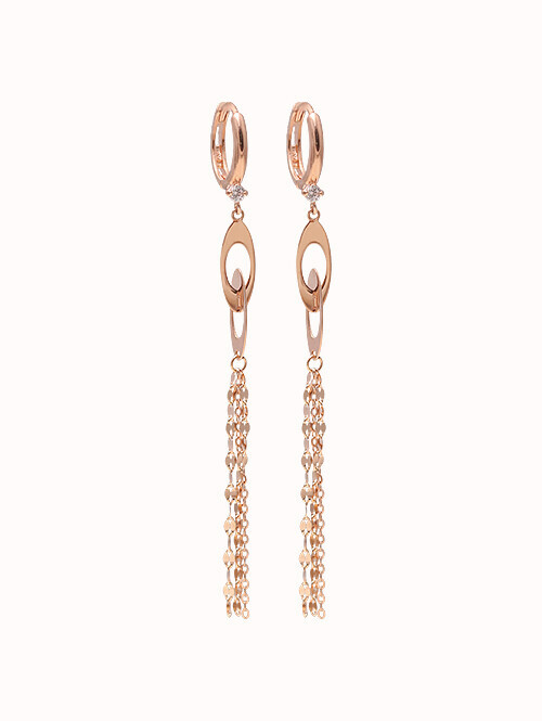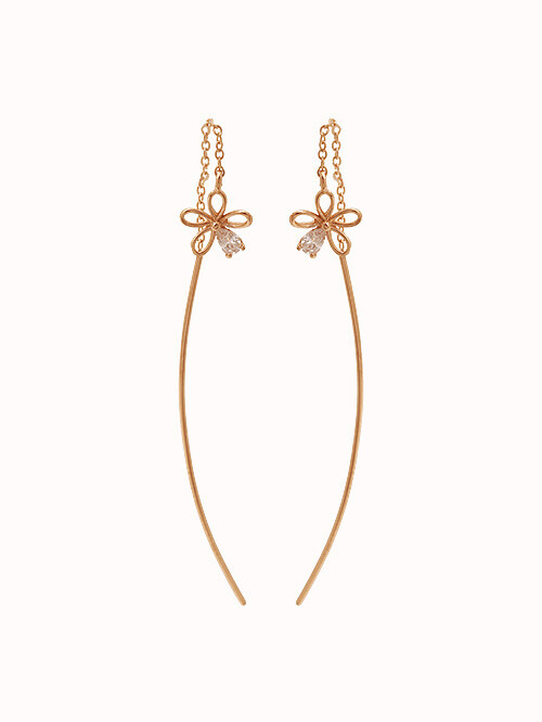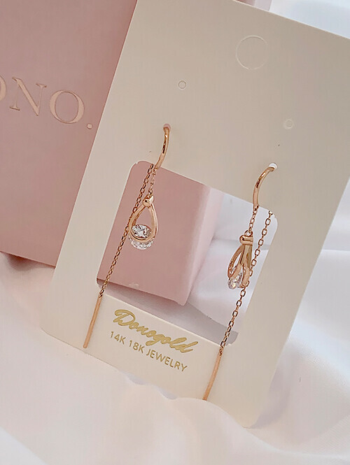 14K 로즈 드롭 롱 귀걸이