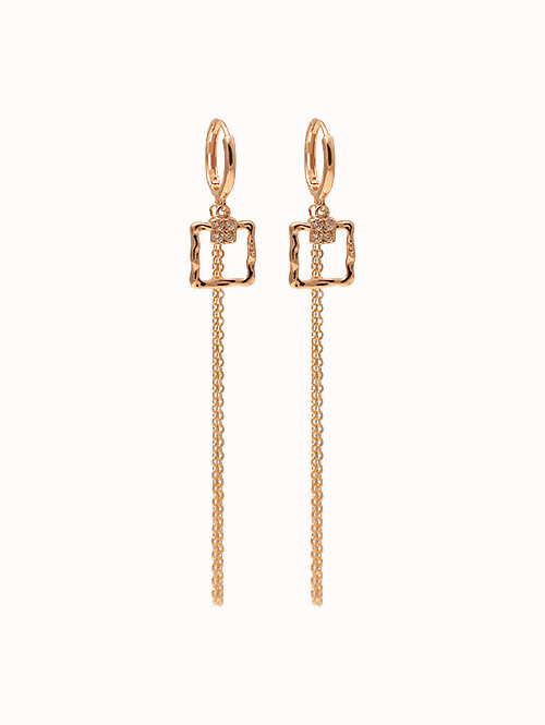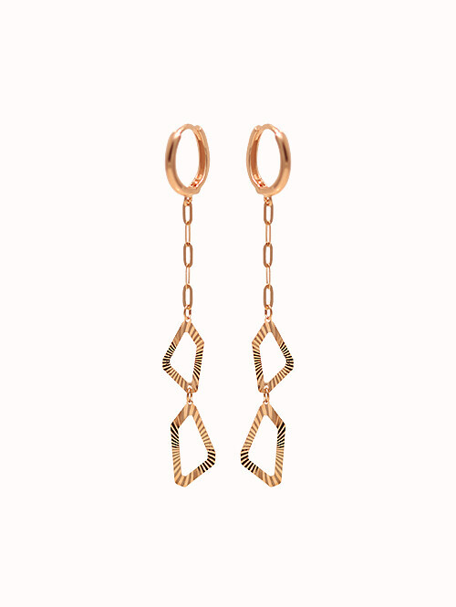 고급스러운 다각형 쉐입과 박스체인이 매치된 트렌디한 무드의 드롭 귀걸이