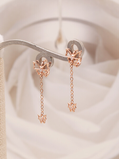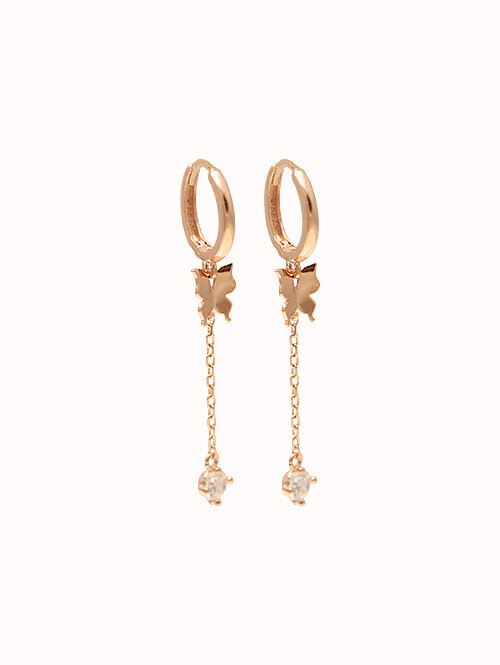 14K 18K 플라잉나비 찰랑체인 드롭귀걸이