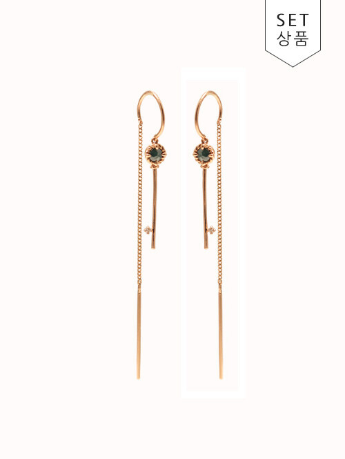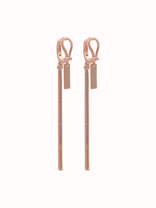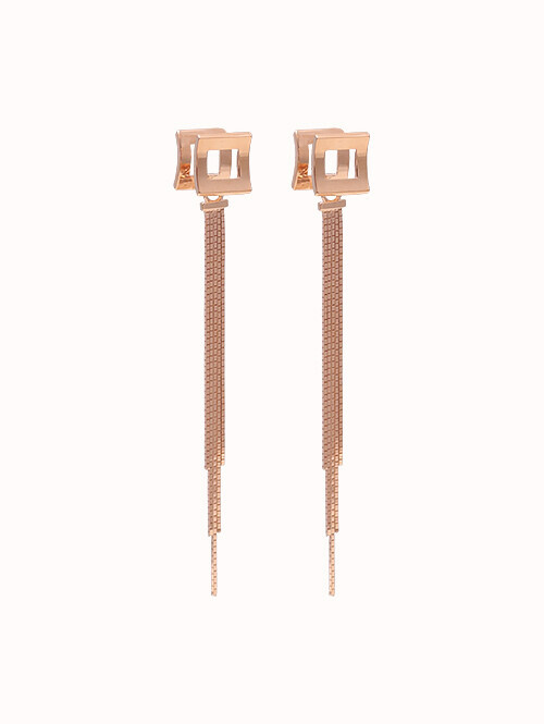 고혹적이고 세련된 무드가 돋보이는 5줄 박스체인 드롭귀걸이