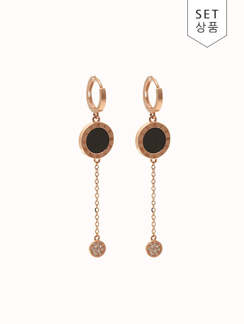 14K 써클큐빅바 롱 체인드롭 귀걸이