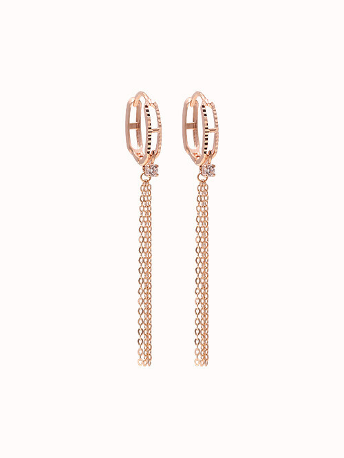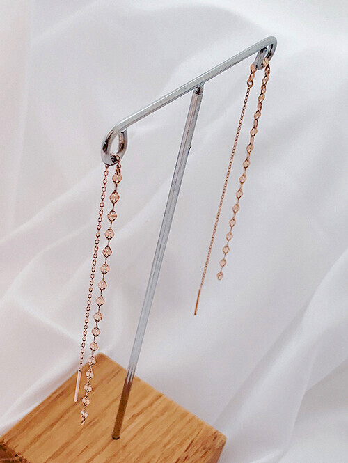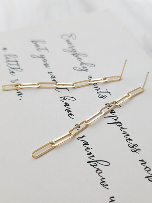 체인이 아래로 찰랑찰랑 드롭되어 더욱 돋보이는 스타일리쉬한 체인귀걸이