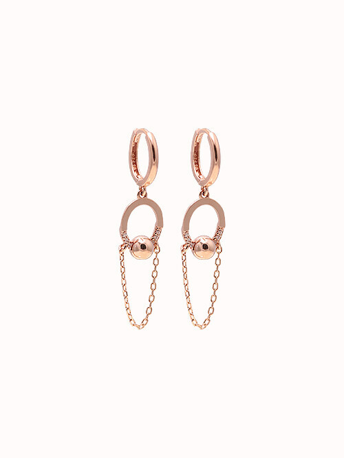 볼과 두줄 체인을 드롭한 스타일리시한 귀걸이