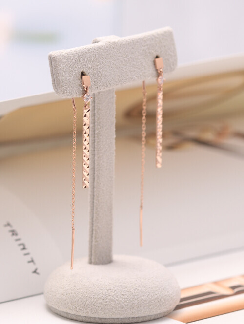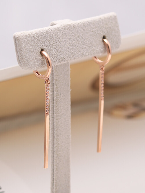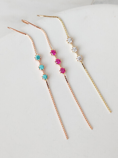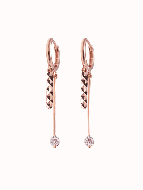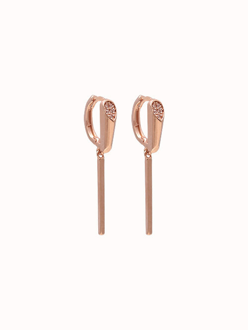 큐빅이 세팅된 원통형 쉐입 아래로 미니 스틱이 연결된 데일리 드롭귀걸이