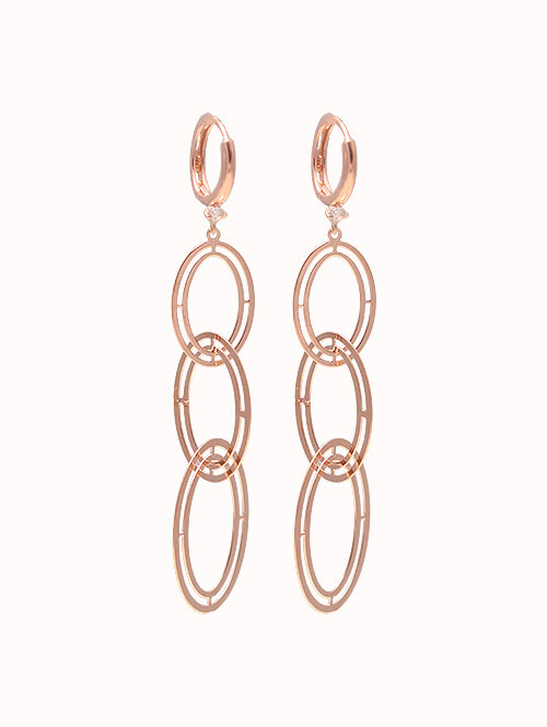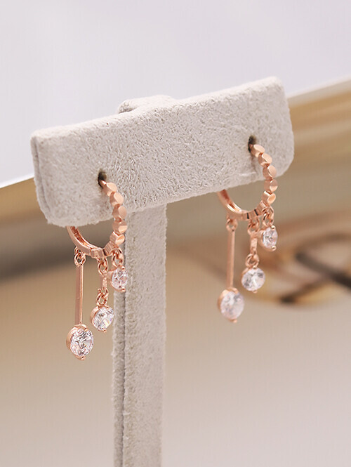 세 개의 써클큐빅과 롱한 체인이 스타일리시하게 드롭된 포인트 귀걸이