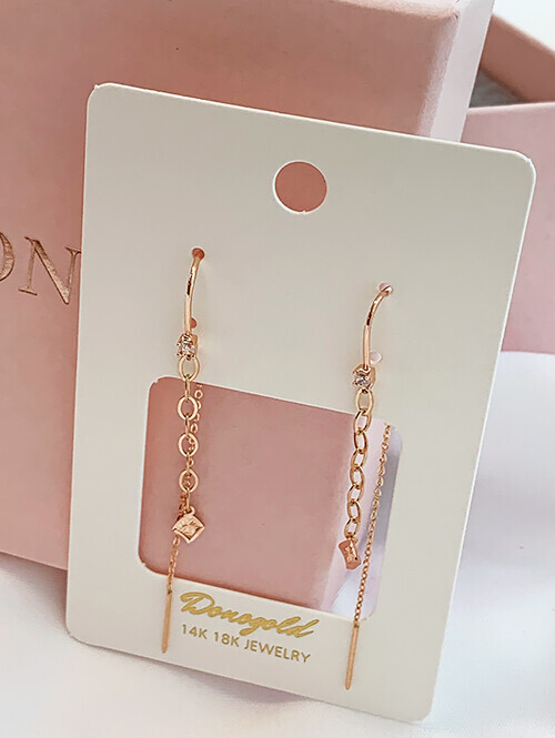 14K 18K 론카 스퀘어 박스체인 5줄 드롭귀걸이