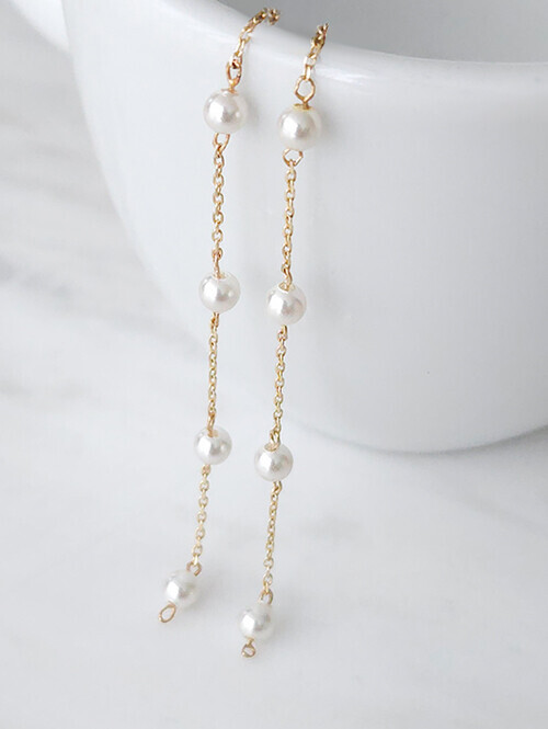우아하고 여성스러운 무드가 물씬 느껴지는 롱 드롭 귀걸이