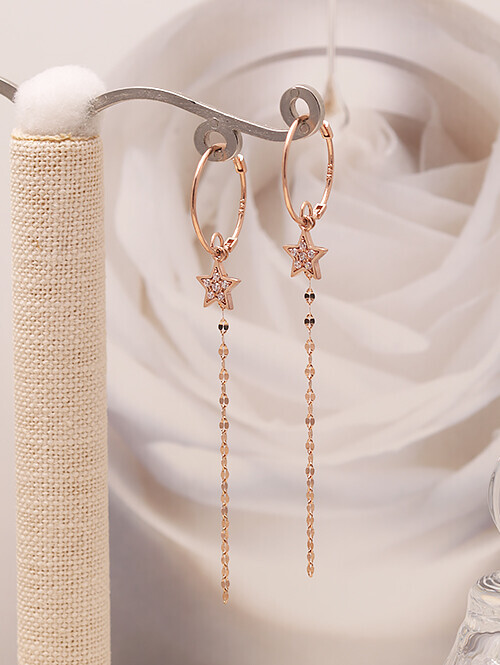 감성적인 별 쉐입 아래로 롱한 길이감의 체인이 드롭된 우아한 귀걸이