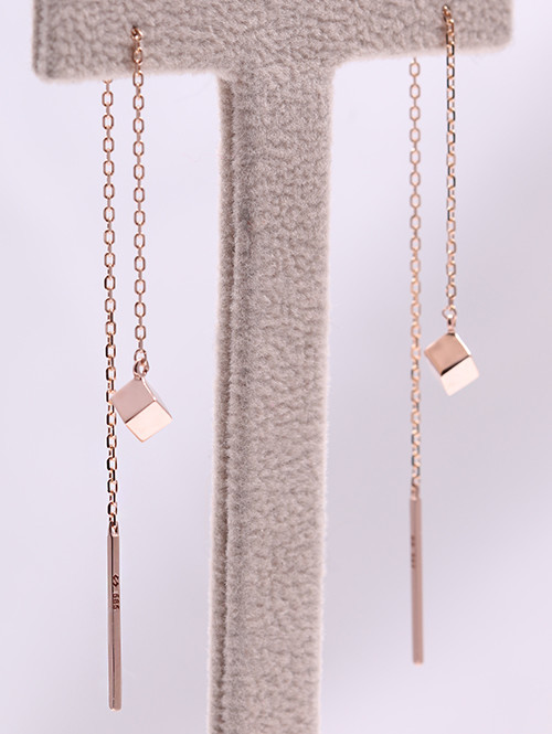 [당일출고 제품] 14K 18K 큐브 드롭 롱귀걸이 [소]